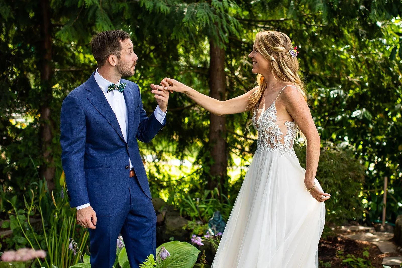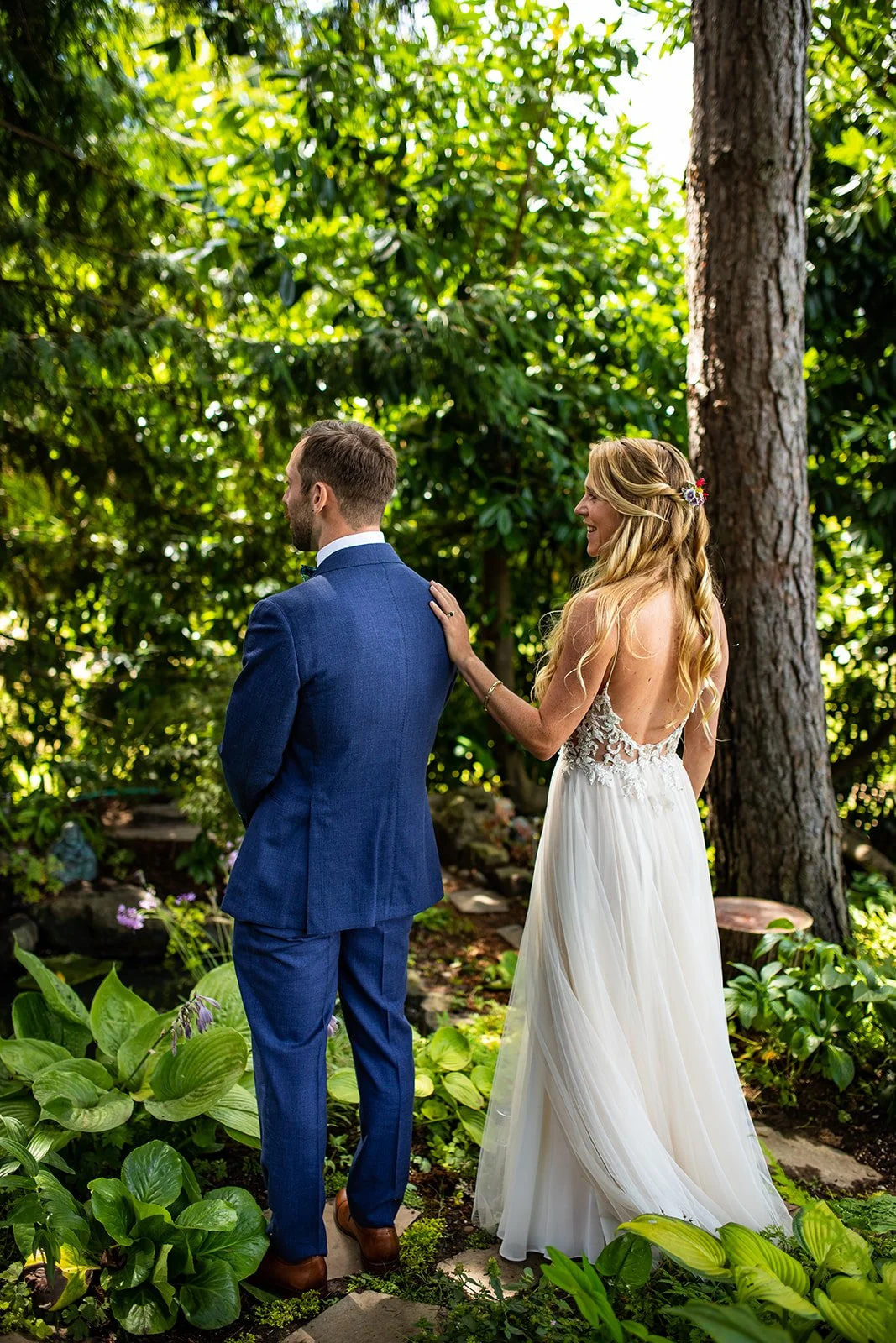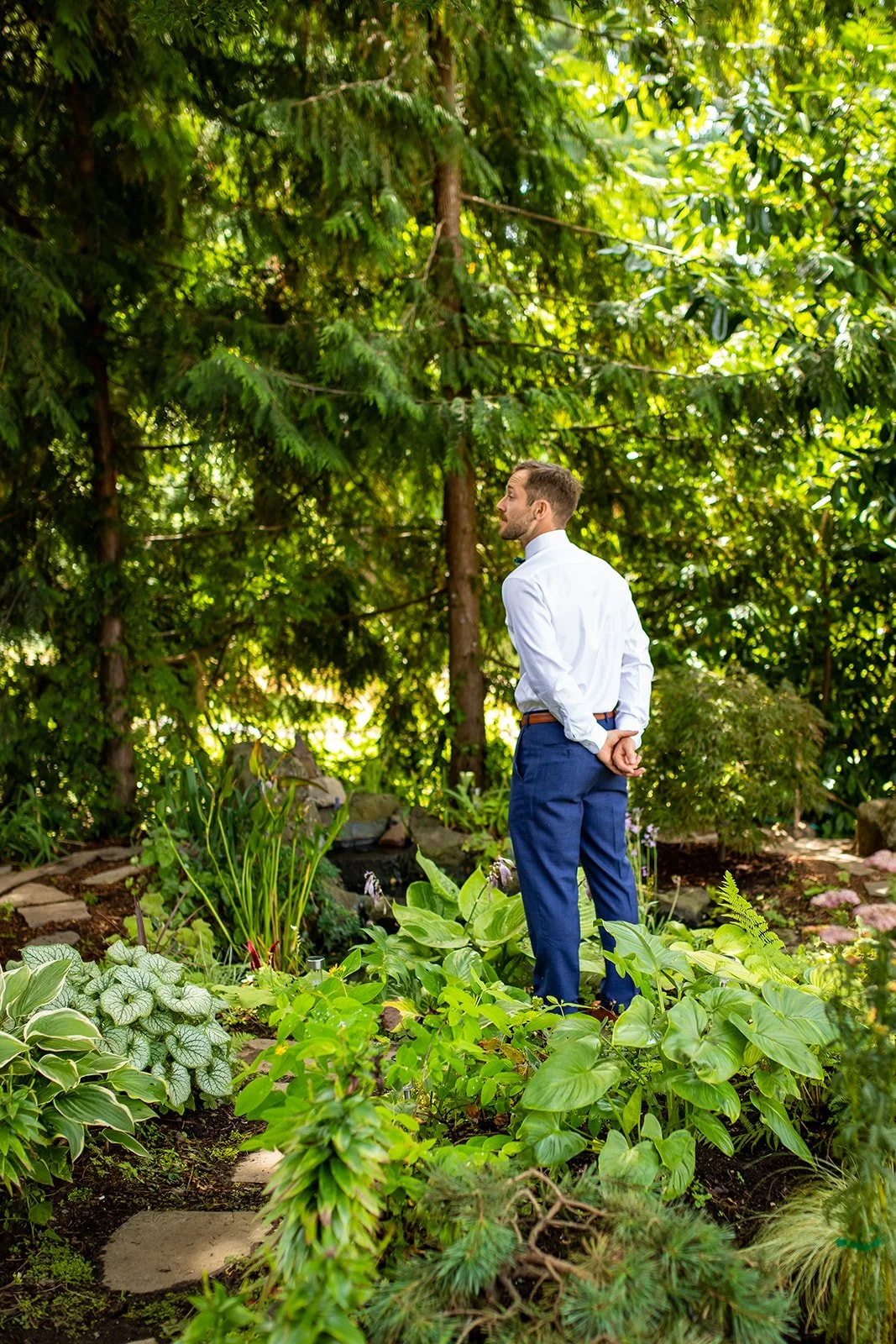 Kristin & Dan loved the idea of using the Japanese garden at her mom’s house for their first look. I set Dan up in a good spot and she went up behind and surprised him. The look on his face was everything- he loves her so much! This is what I love about first looks. The build up and anticipation followed by the sweetest reactions. It’s always a sweet moment to capture.