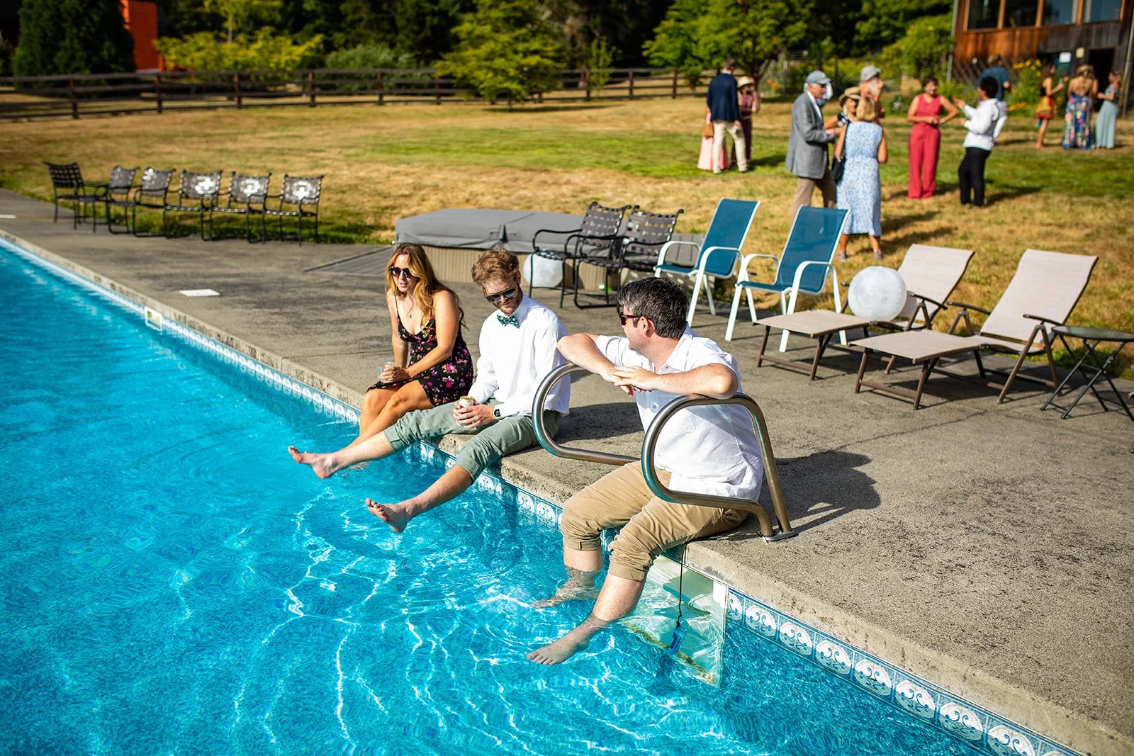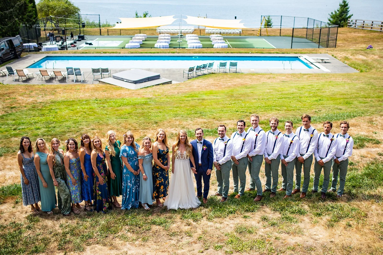 Kristin & Dan met in Santa Cruz, CA and connected over their mutual love of the ocean. They eventually moved to Bainbridge Island where Kristin’s family lives, and her mom’s property was the perfect place to host their big wedding. With waterfront views, a swimming pool, and tennis court to have the reception on, this location was made for summer fun! The rainbow color palette & summer sunshine made for some beautiful photos to remember this incredible day.