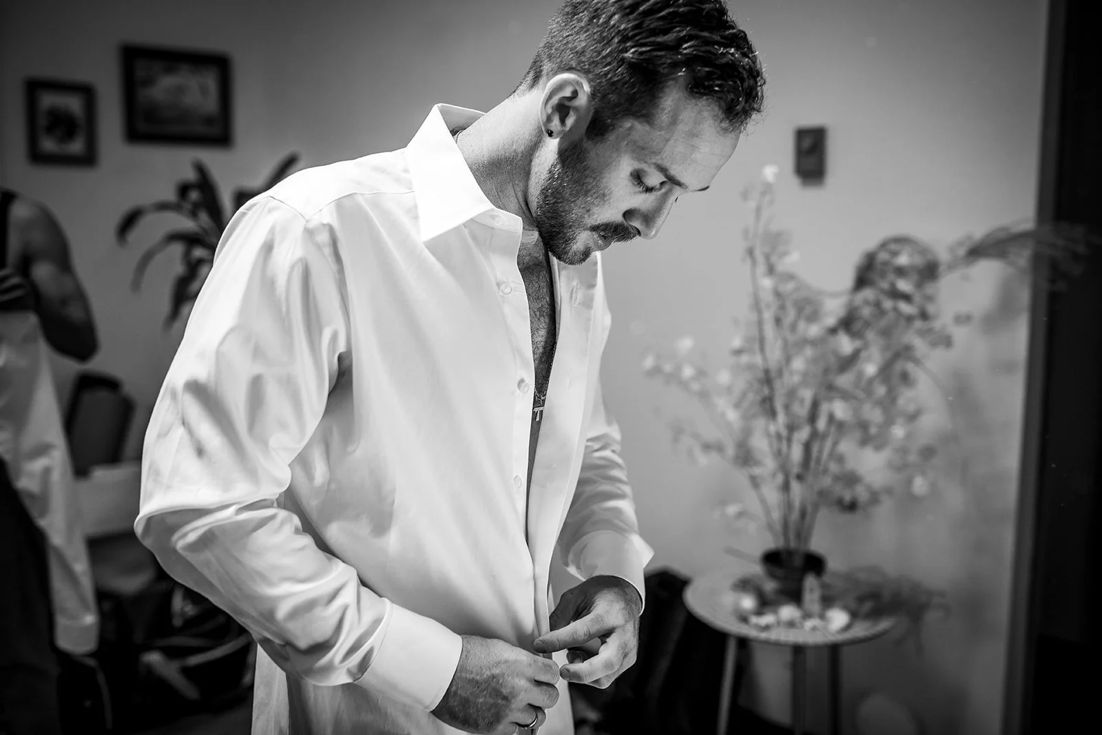 Kristin got ready in the main house and Dan got ready at their apartment in town. They had their friends get ready with them and the vibes were high this morning. It was a gorgeous day and everyone was excited. Kristin’s mom helped her get into her dress and then we were ready to set up their first look!